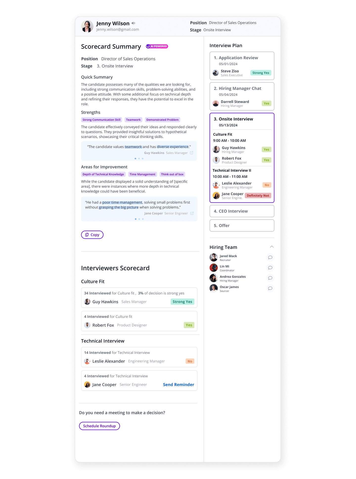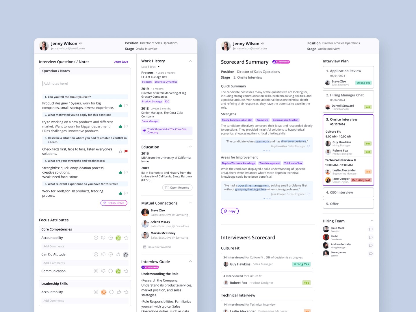 Research with 30+ recruiters found that interviewers lack prep time, prefer external note-taking tools over the ATS, and often delay scorecard submissions due to high workloads. These bottlenecks stall the hiring pipeline and risk losing top-tier talent to competitors.