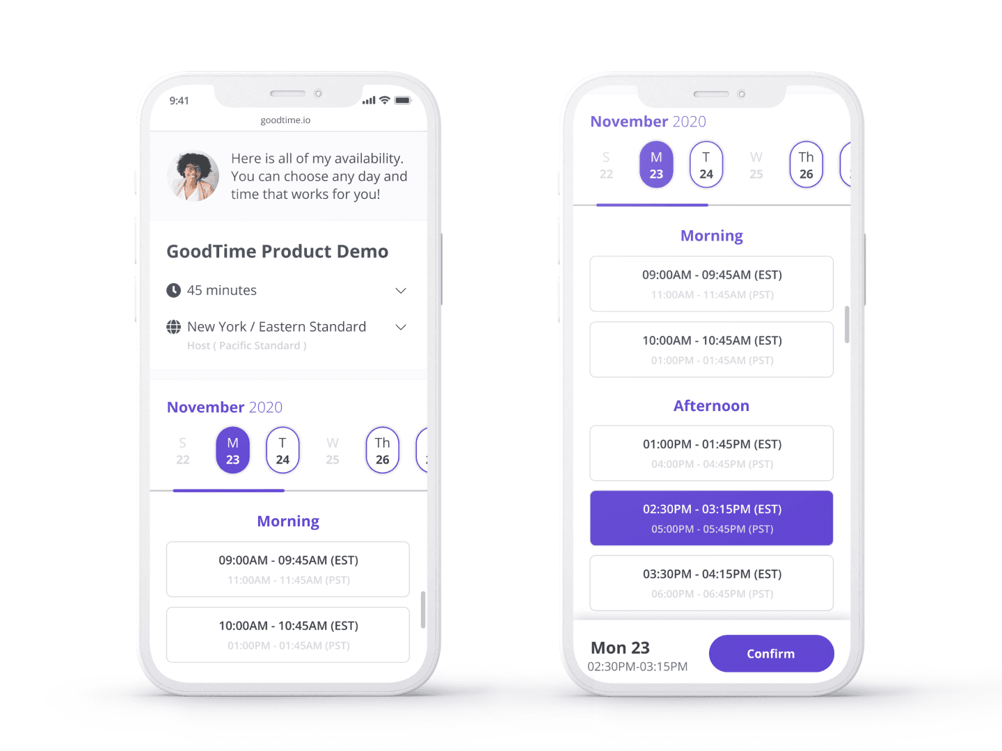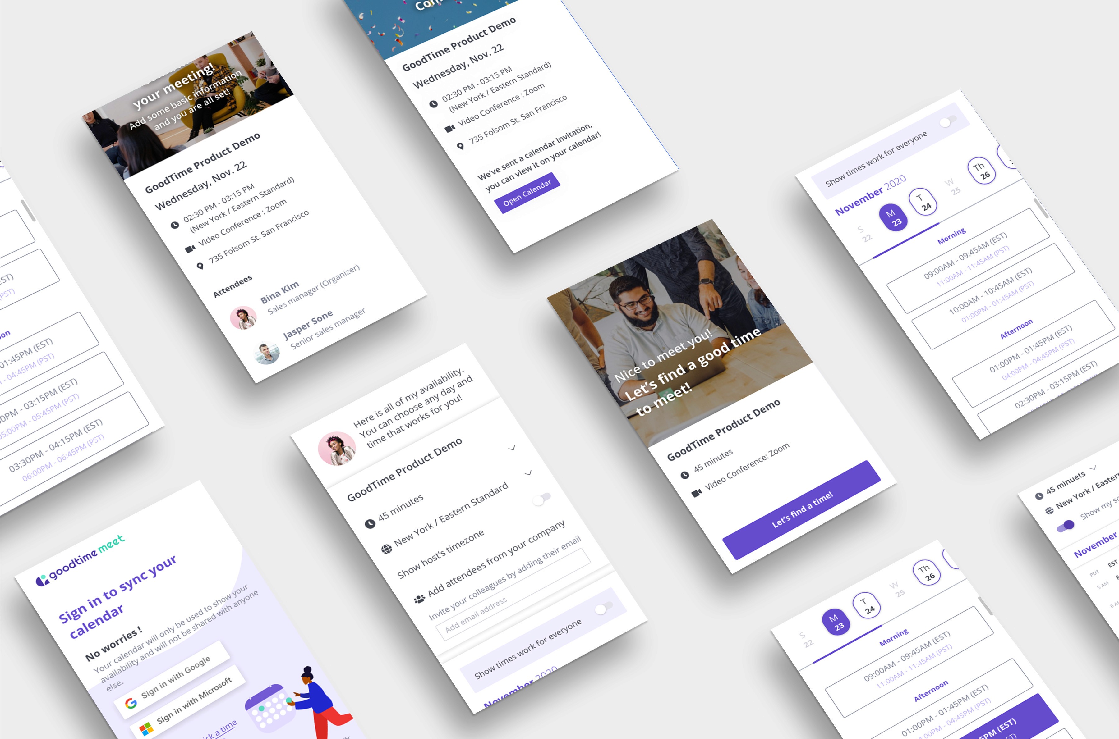 GoodTime Meet is a scheduling platform that simplifies meeting coordination via shareable links. I redesigned the mobile experience to better serve business professionals by incorporating user feedback and modernizing outdated navigation, ensuring a seamless booking flow for both hosts and guests.